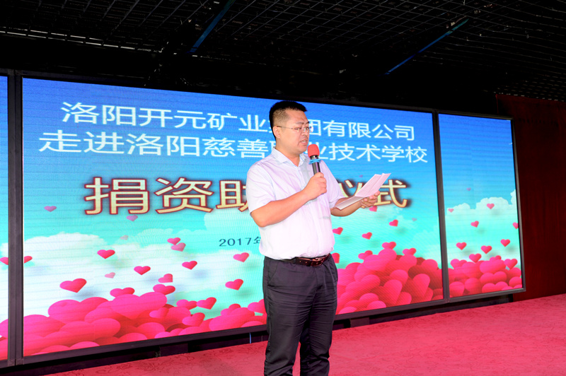 上午10點(diǎn)20分儀式開始,集團(tuán)總經(jīng)理助理叢萬通代表公司發(fā)表講話,他重點(diǎn)談到:近年來,開元礦業(yè)集團(tuán)在董事長(zhǎng)許明月的帶領(lǐng)下,強(qiáng)力推進(jìn)企業(yè)發(fā)展的同時(shí),積極開展各項(xiàng)社會(huì)公益活動(dòng),在慈善愛心公益領(lǐng)域不遺余力,先后為汝陽縣馬溝小學(xué),洛寧縣東宋鎮(zhèn)郭村小學(xué)、兒童福利院、興華鎮(zhèn)中心小學(xué),宜陽縣紅斑狼瘡重病小女孩、文物保護(hù)維護(hù)等捐款捐物累計(jì)超過100萬元。作為洛陽慈善總會(huì)理事單位,得知洛陽慈善職業(yè)技術(shù)學(xué)校部分學(xué)生還沒有統(tǒng)一的職業(yè)西服后,集團(tuán)立即聯(lián)系校方,為學(xué)校捐贈(zèng)60套校服西裝,價(jià)值9000余元;希望同學(xué)們將社會(huì)各界的關(guān)愛轉(zhuǎn)化為學(xué)習(xí)的動(dòng)力,積極回報(bào)社會(huì)。