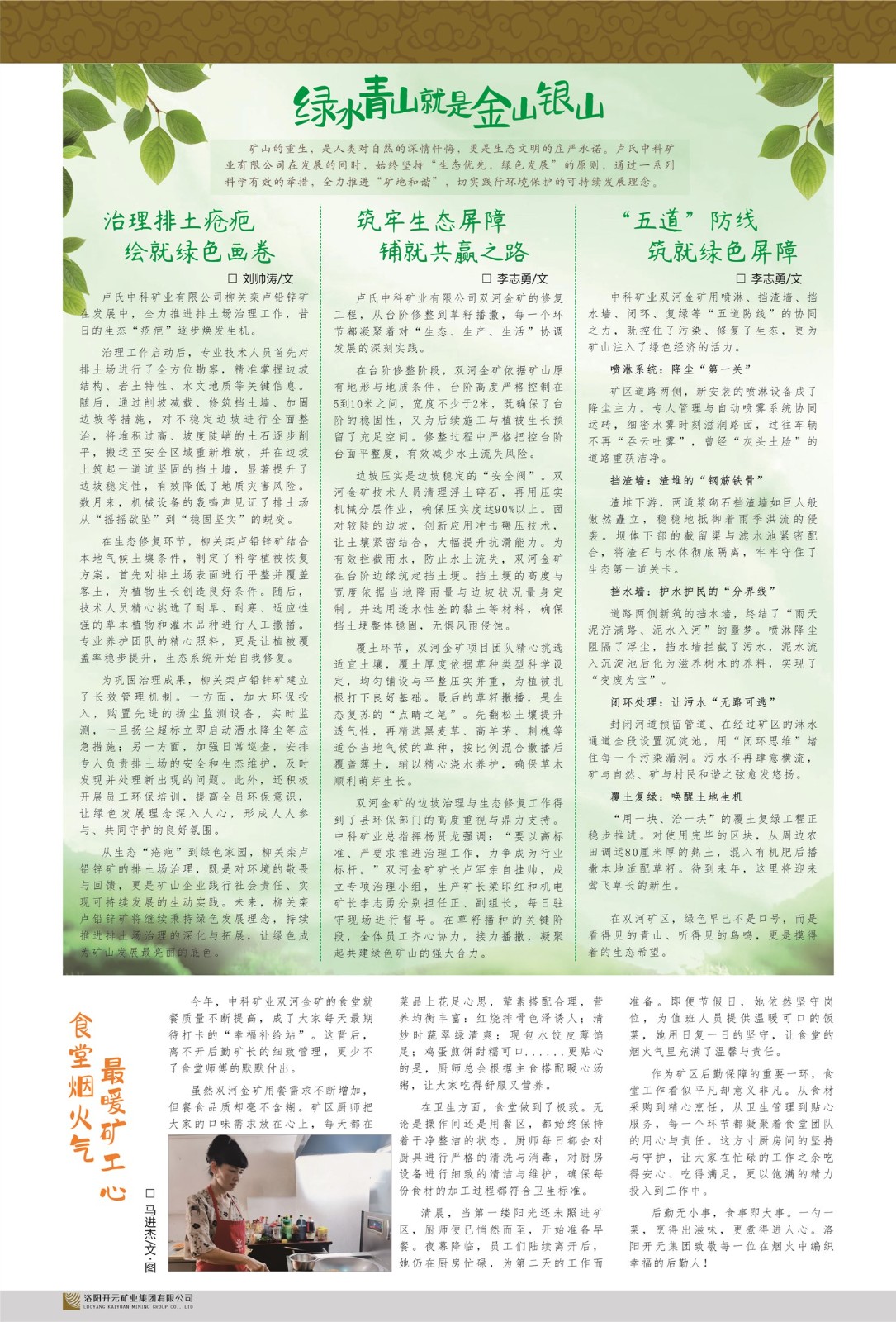 我們堅持“絕不能以犧牲環(huán)境和人的健康為代價從事生產(chǎn)”的理念,重視環(huán)境保護,堅持發(fā)展循環(huán)經(jīng)濟,打造綠色花園式礦山企業(yè)。